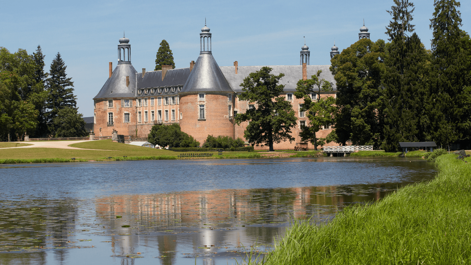 Le château de briques roses nous est parvenu, avec ces élégantes tours d’angle couronnées de campaniles. Berceau de la famille de l’académicien Jean d’Ormesson, il abrite des charpentes et greniers de dentelles à visiter impérativement.