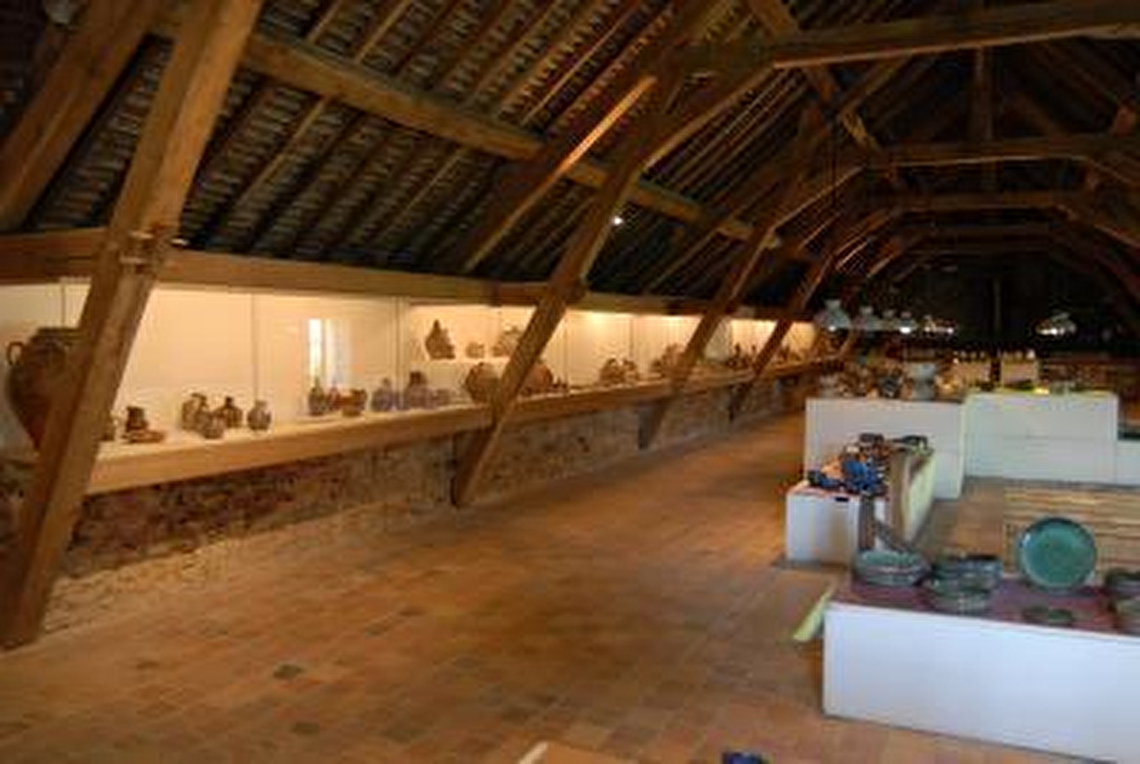 Collection de grès anciens de Puisaye dans le vaste grenier d'exposition.