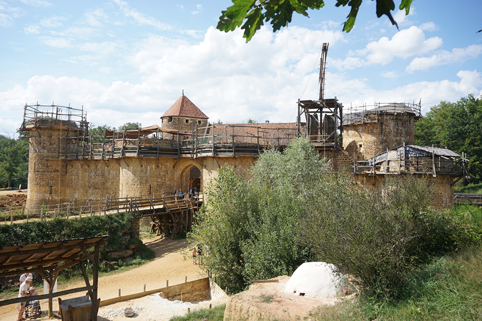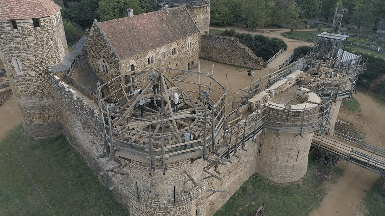 De saison en saison, les œuvriers de Guédelon relèvent ce défi hors normes. L'enceinte fortifiée, le logis et ses charpentes, la chambre et ses peintures murales, la cuisine et le cellier, les salles de tir et leurs imposantes voûtes d'ogives, la chapelle, la moitié du chemin de ronde… ont été réalisés sous les yeux de milliers de visiteurs venus visiter ce chantier unique au monde.