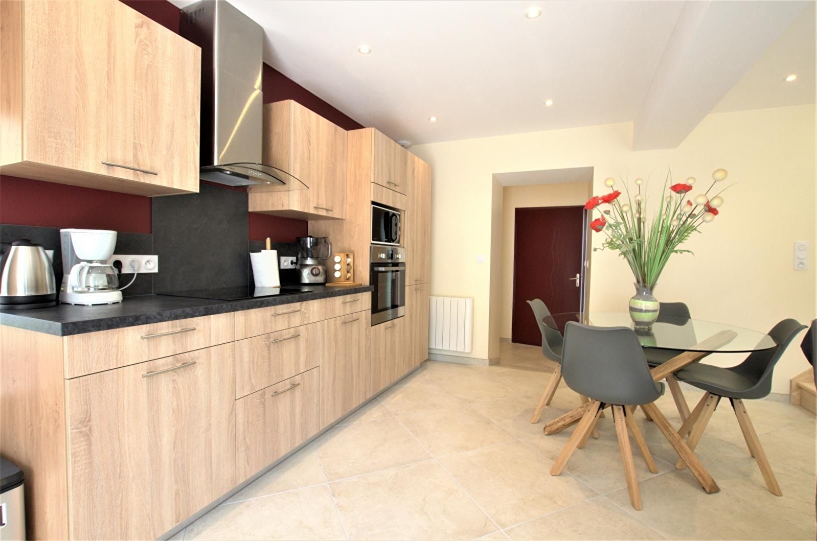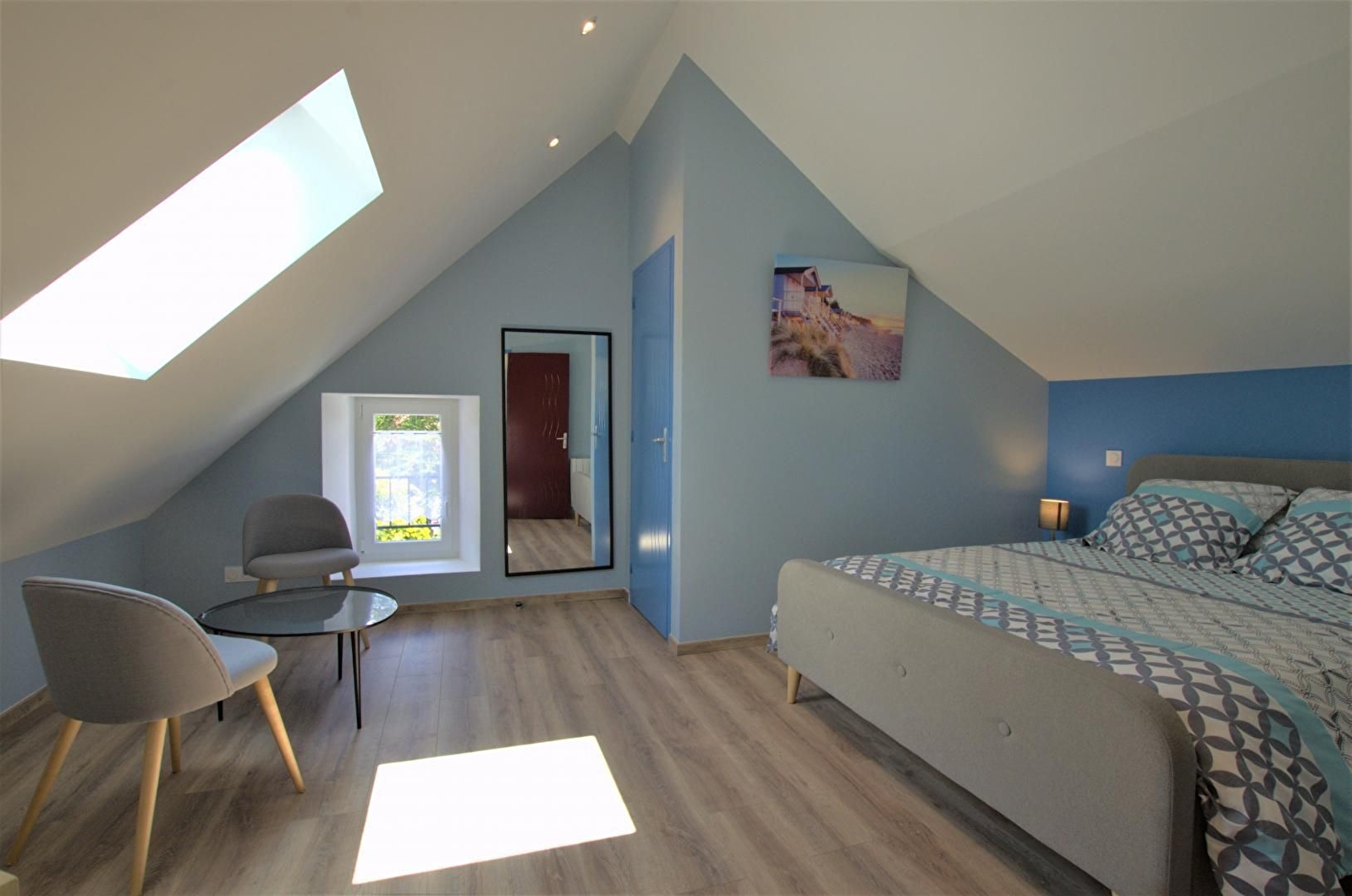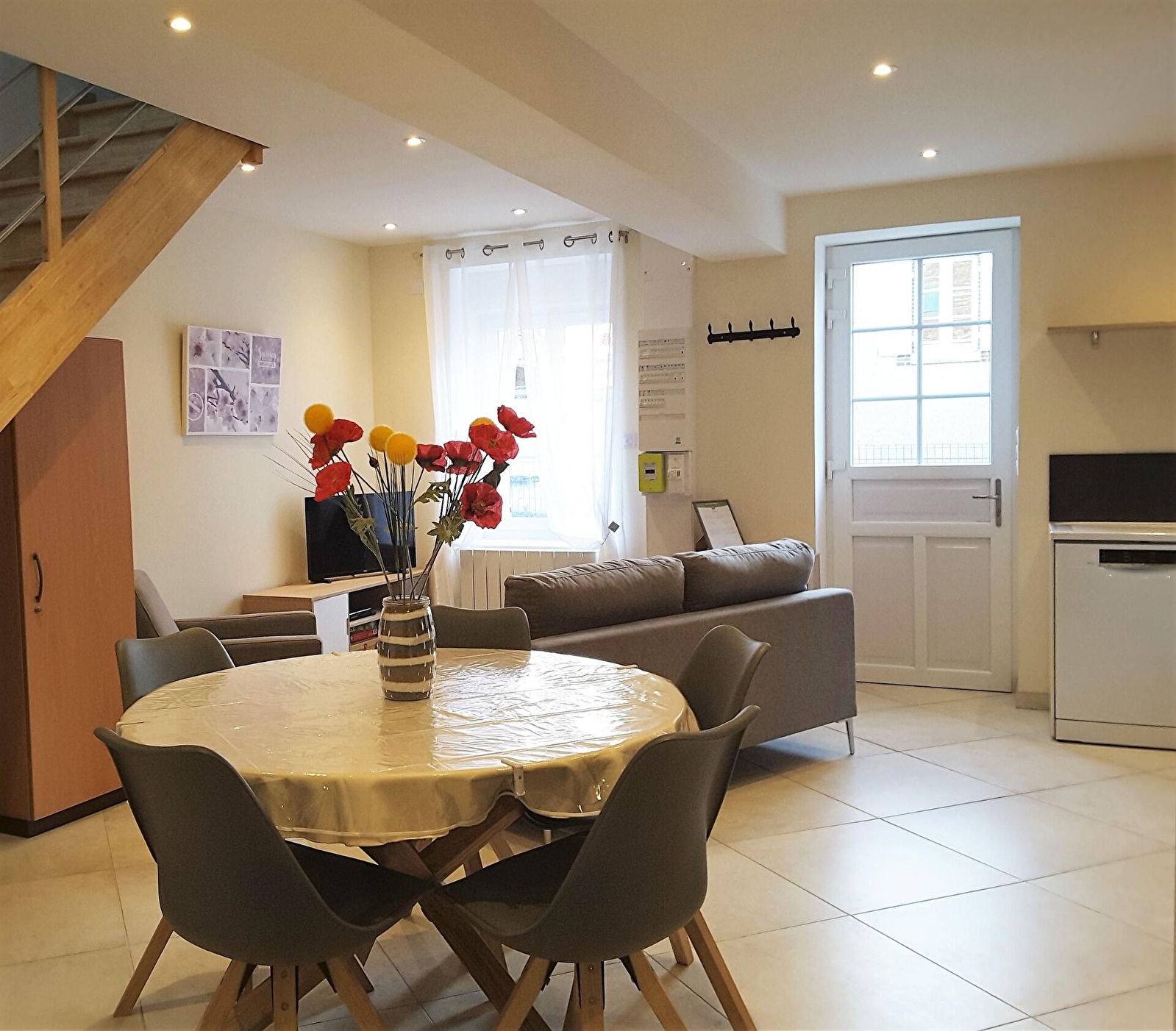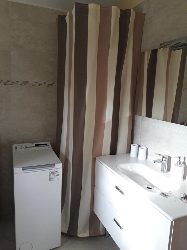 Cette petite maison entièrement rénovée au goût du jour vous propose un rez de chaussée avec une pièce de vie et sa cuisine ouverte entièrement équipée, une spacieuse chambre (lit double 160 x 200 + 1 lit simple 90x190) et une salle d'eau (grande douche à l'italienne, vasque, wc et lave-linge). A l'étage, vous disposerez d'une chambre (lit double 140 x 200 + lit simple 90x190) avec cabinet de toilette (wc + vasque).